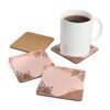 • Set of four high quality square coasters with rounded corners, made from durable Masonite hardboard with a natural cork backing that helps prevent slipping and protects furniture.