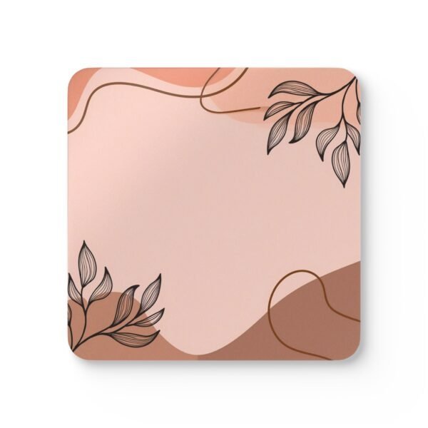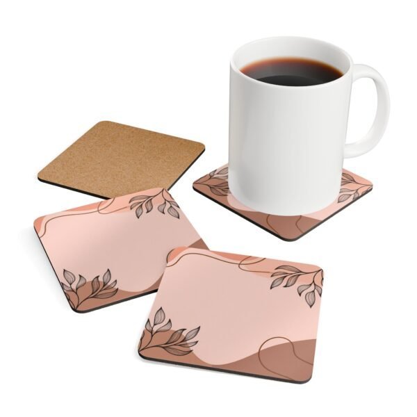 A matching set of four coasters featuring neutral botanical line‑art designs in soft peach, brown, and black tones. Minimal, modern, and calm.