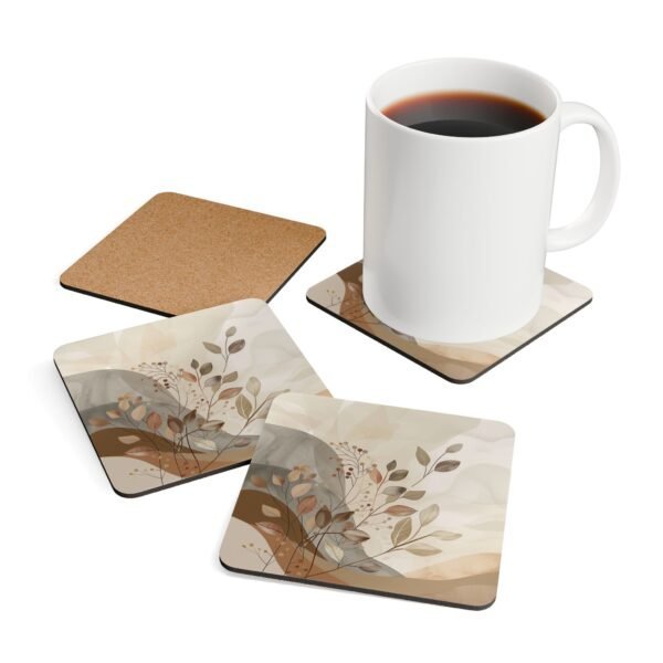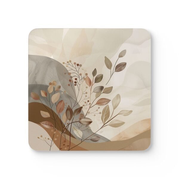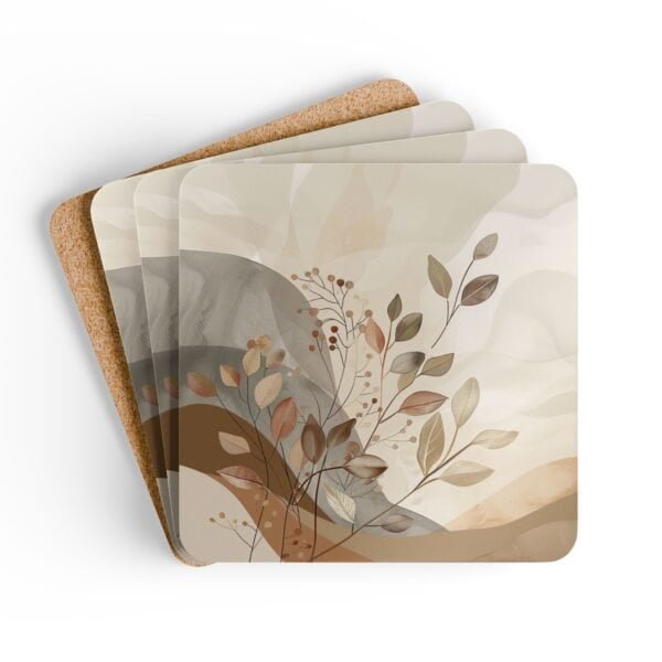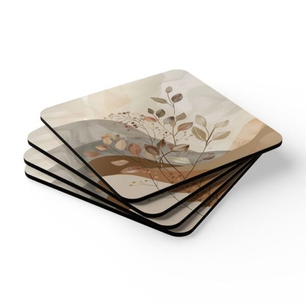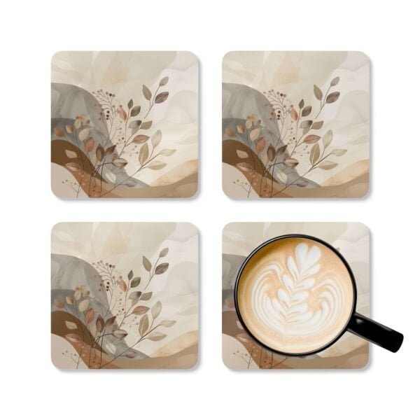 A matching set of four coasters featuring soft neutral botanical artwork with earthy muted tones. Minimal, modern, and calm.